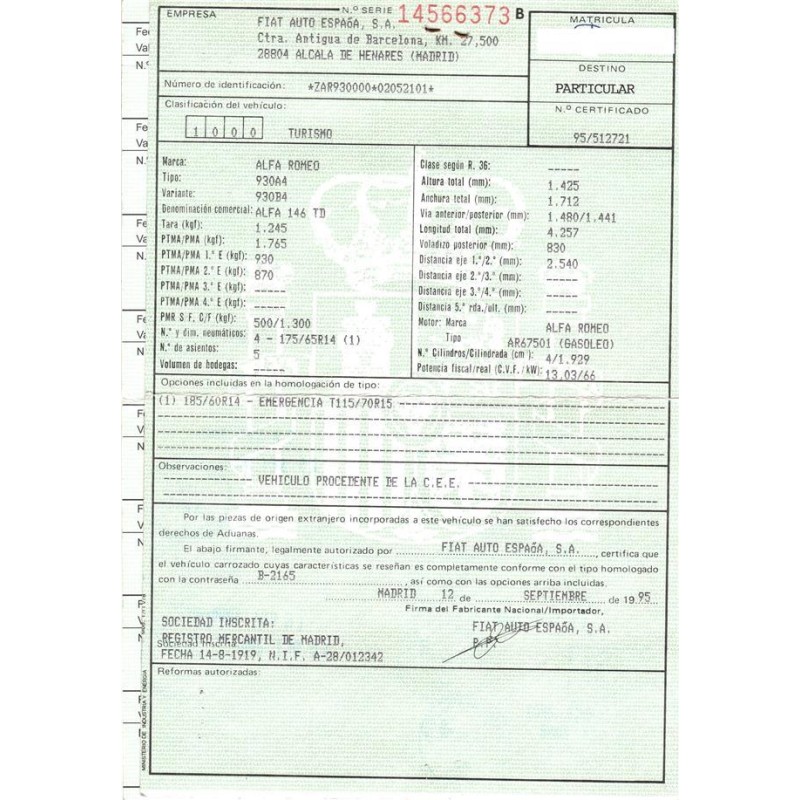 ALFA ROMEO 146 (930_) 1.9 TD (930.B4A)