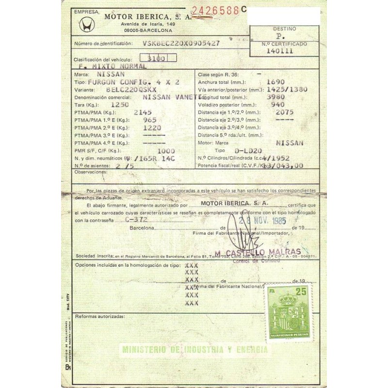 NISSAN VANETTE FURGONETA (C120) 2.0 D