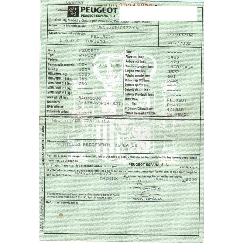 PEUGEOT 206 HATCHBACK (2A/C) 1.9 D