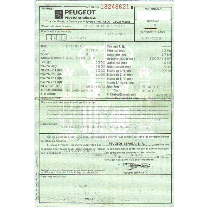 PEUGEOT 406 (8B) 1.9 TD